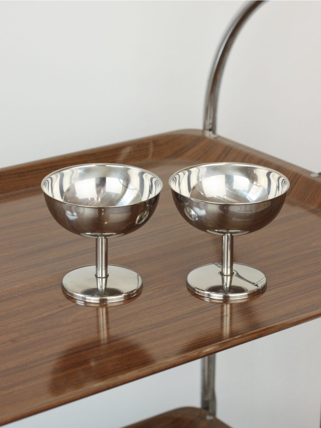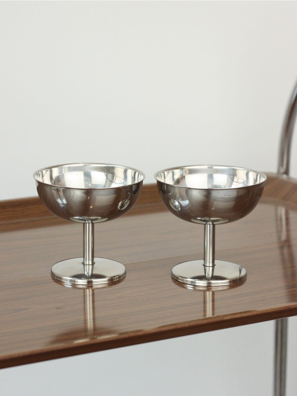 Pár pohárků na nožce z nerezové oceli typu 18/8