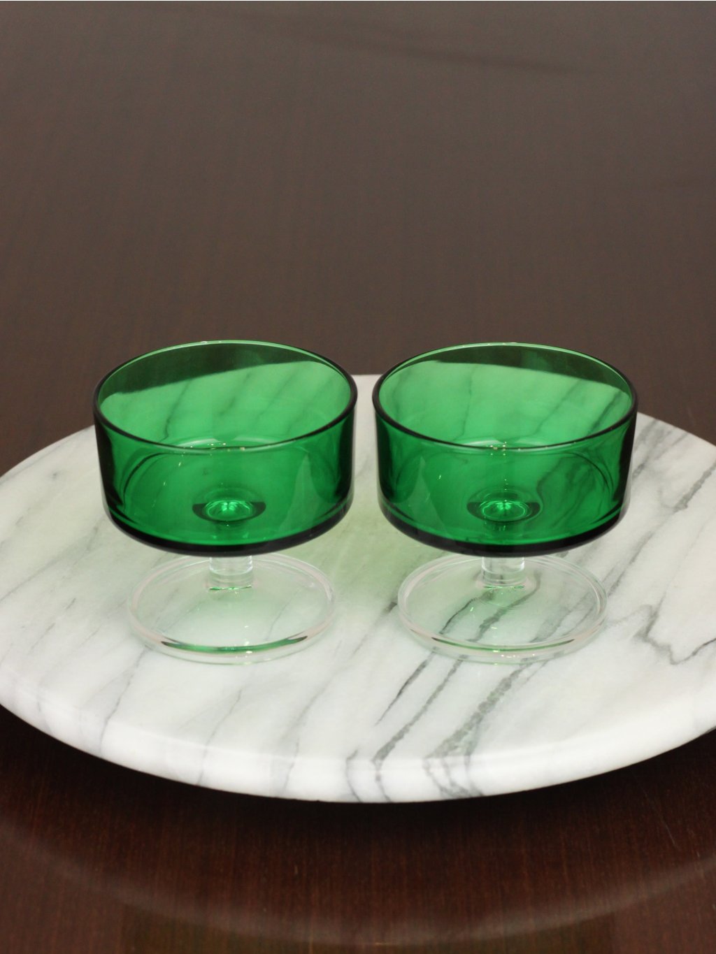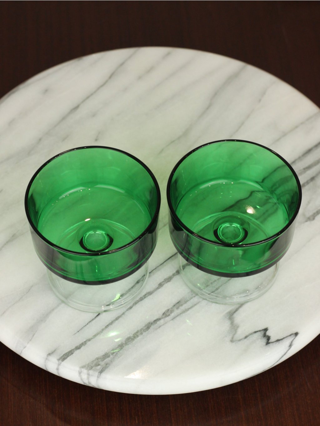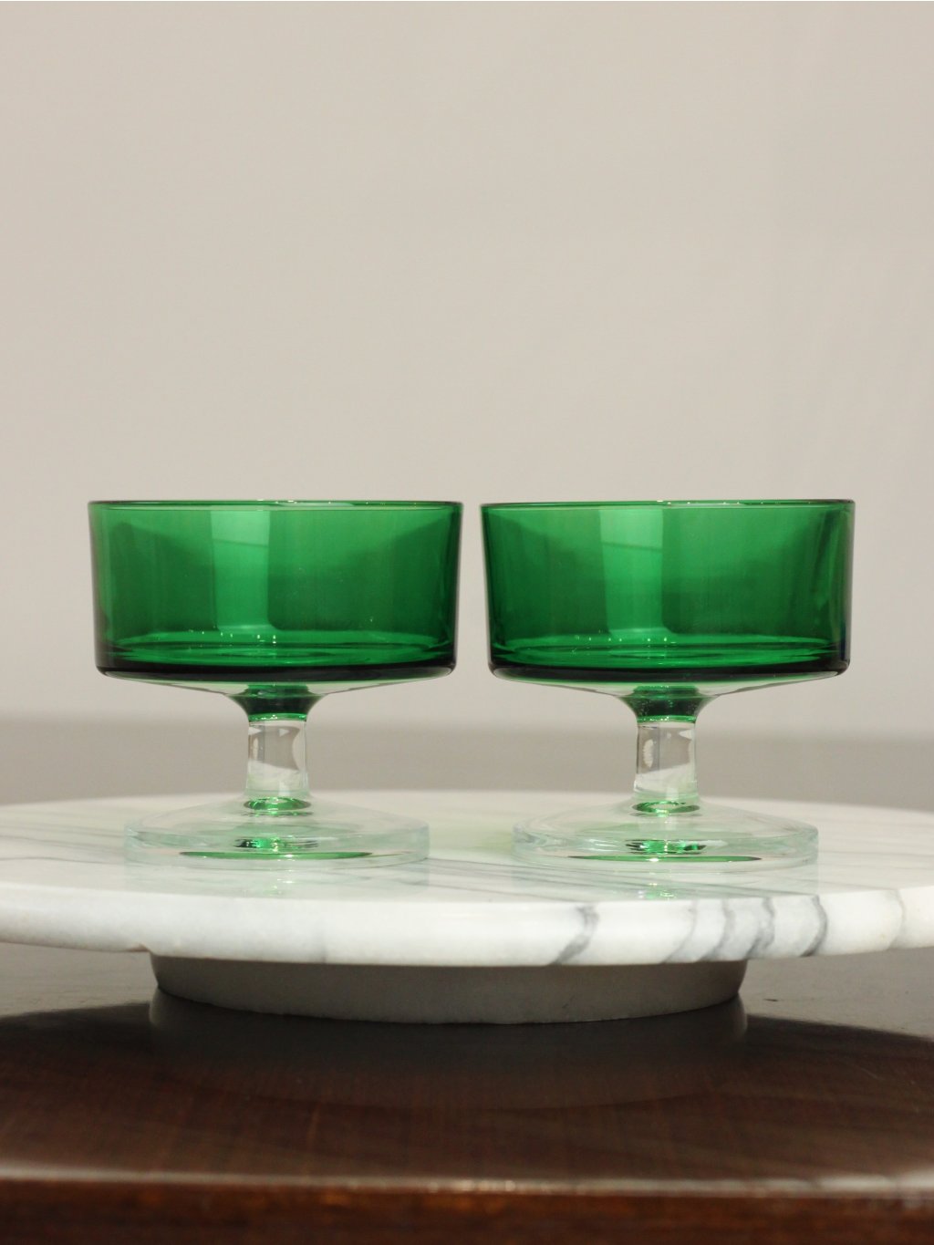 Two glasses in a rare green color from the Cavalier collection by the French brand Luminarc from the 1970s