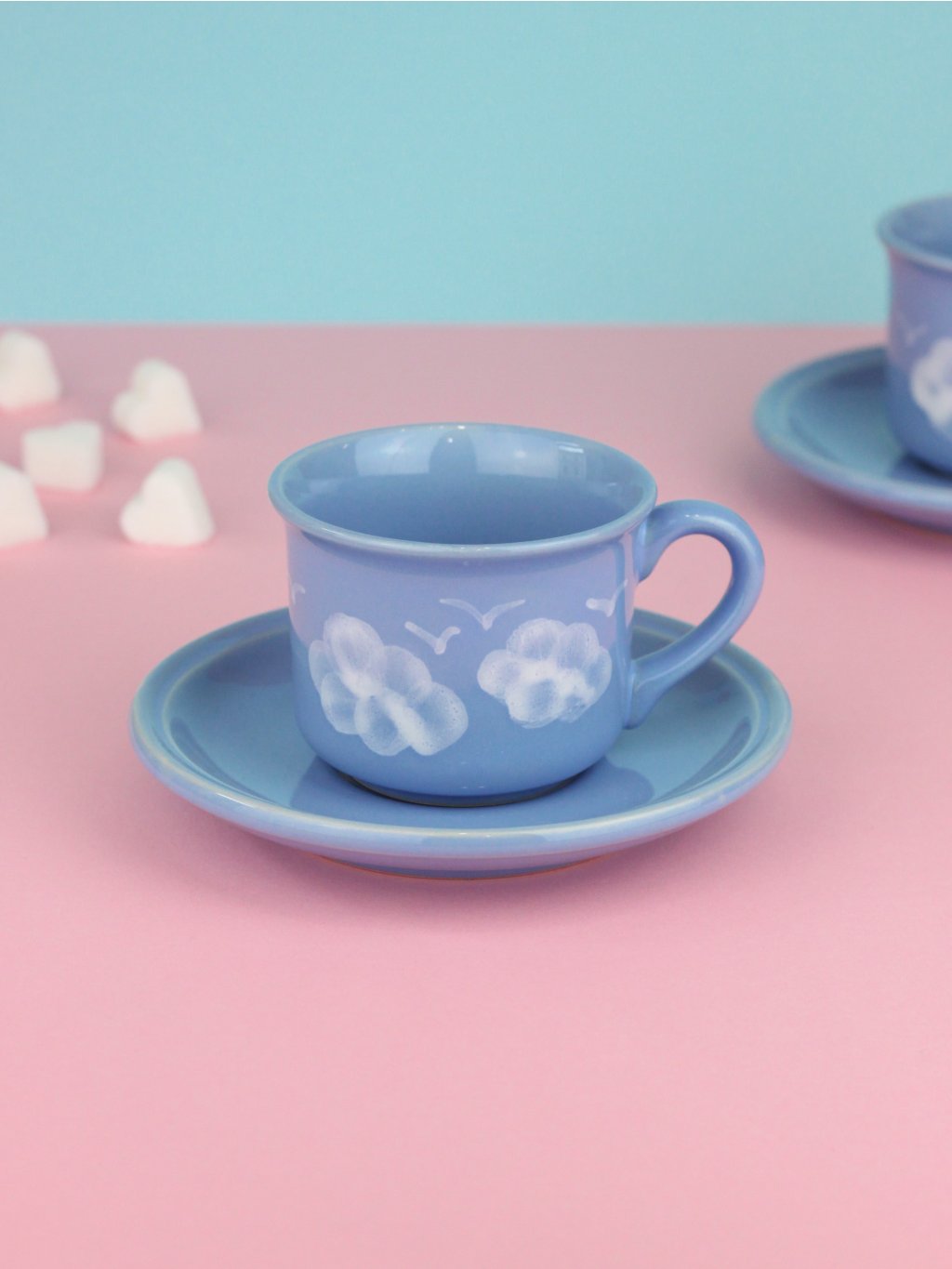 Cup and saucer with hand-painted clouds from the Yugoslav ceramic factory KIL (Slovenia) from the 1970s