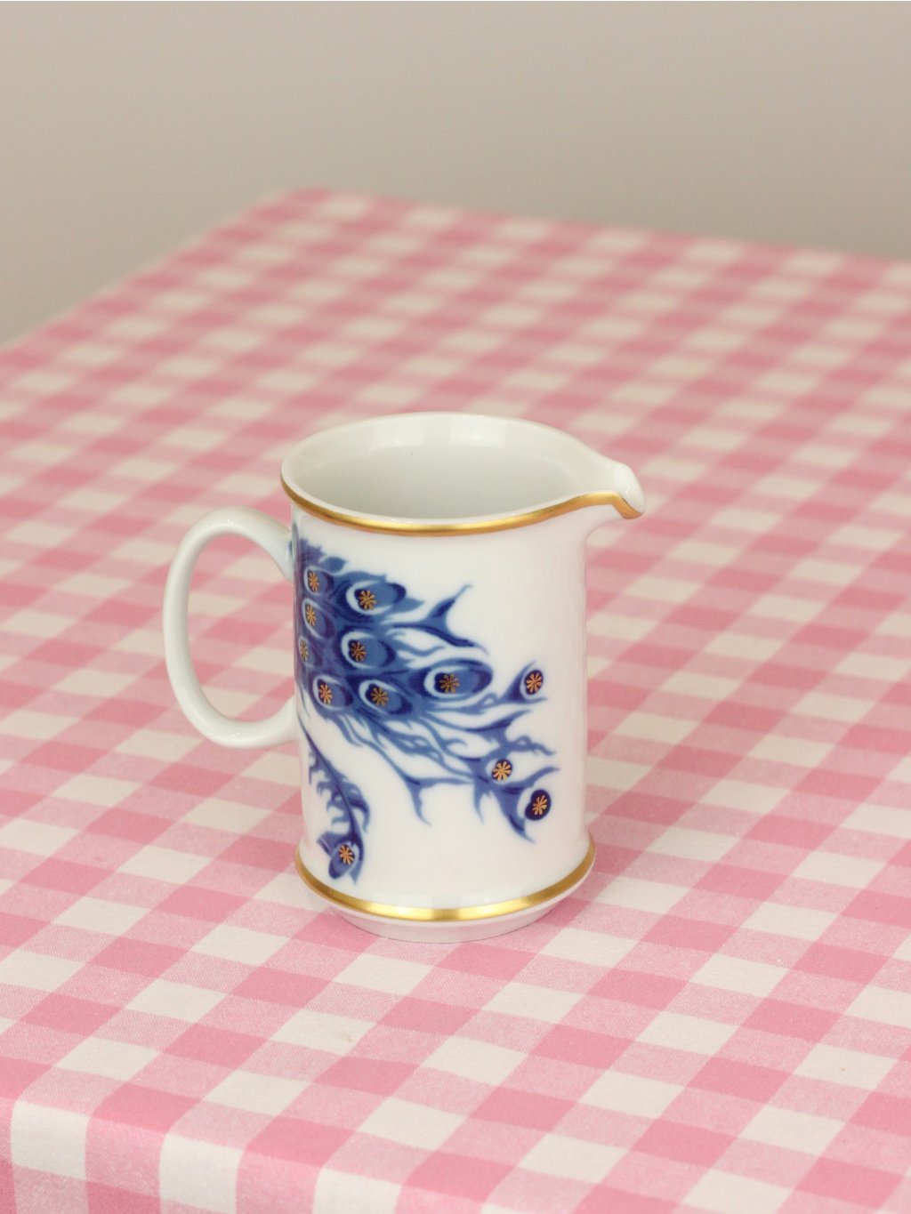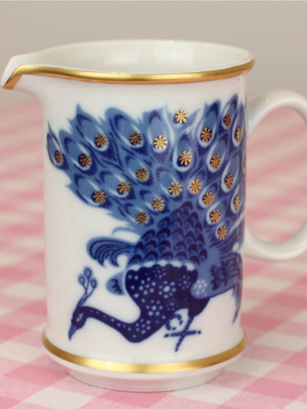 Milk jug with cobalt peacock motif and hand-painted gold stars from the Czechoslovakian porcelain factory Loučky from the Josefina collection