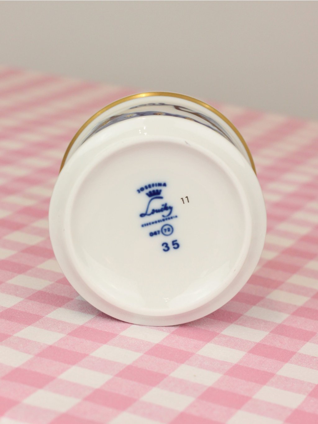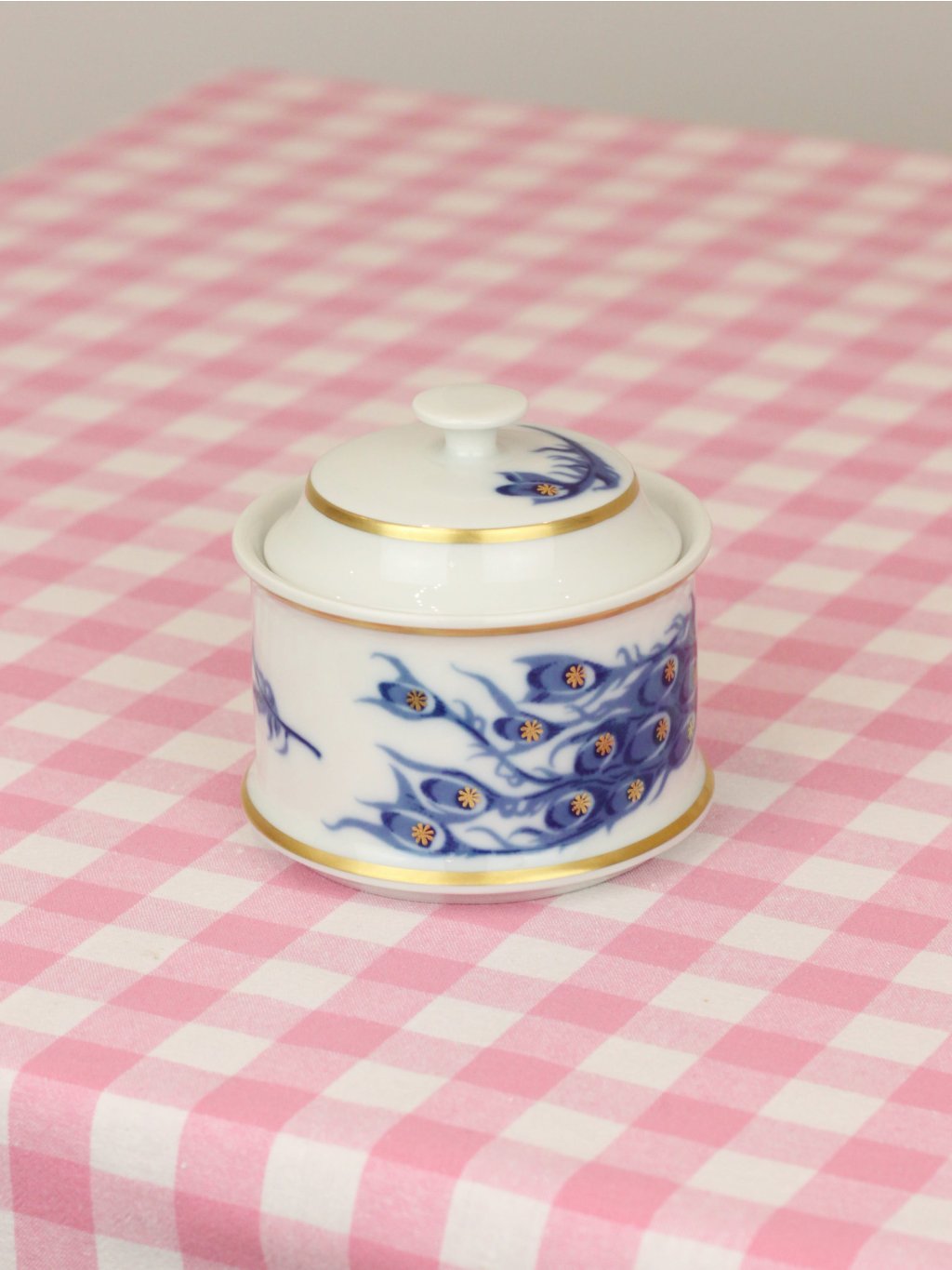 Sugar bowl with cobalt peacock motif and hand-painted gold stars from the Czechoslovakian porcelain factory Loučky from the Josefina collection