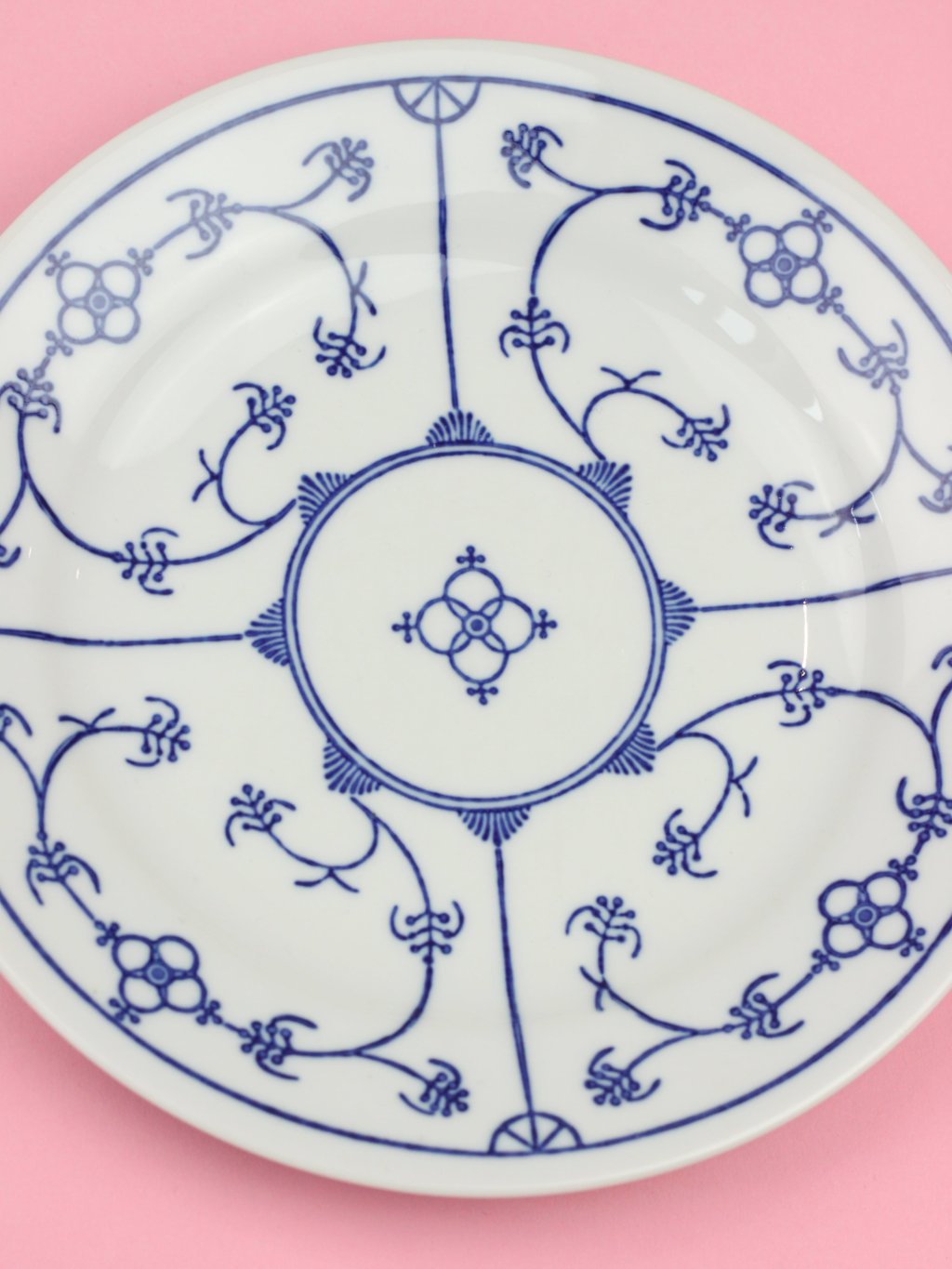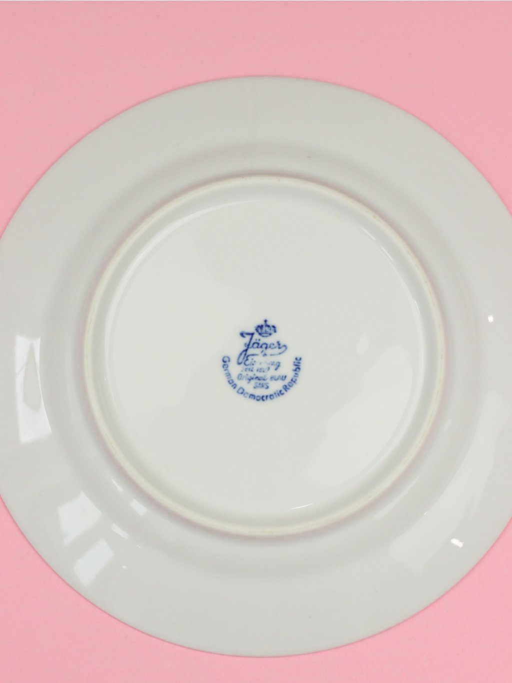 Dessert plate from the East German porcelain factory Jäger Eisenberg with cobalt motif "saxon blue" (blau saks)