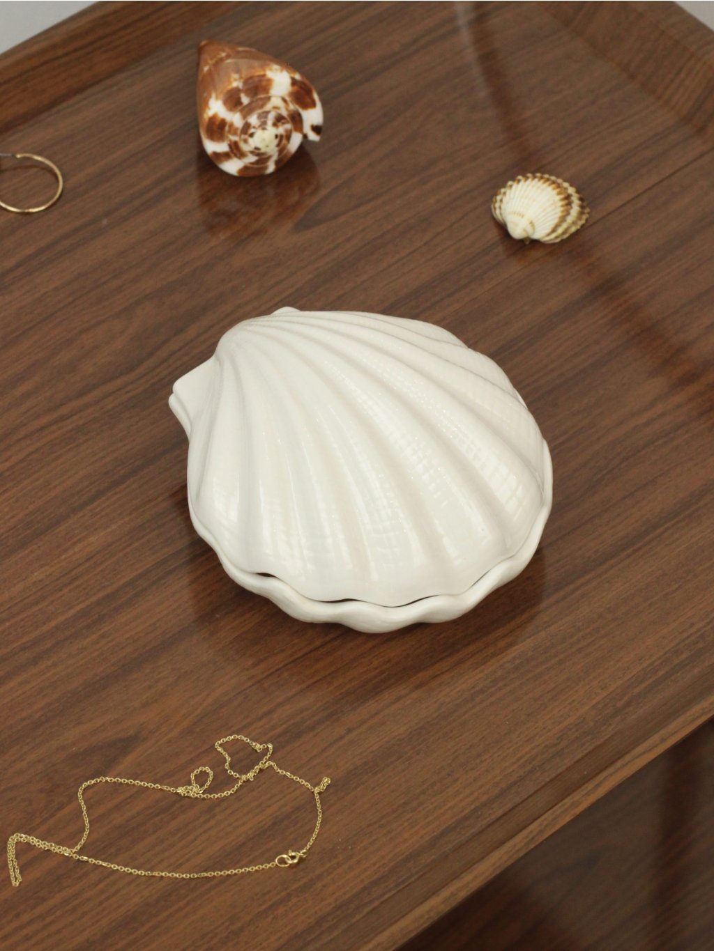Two-piece ceramic shell-shaped box