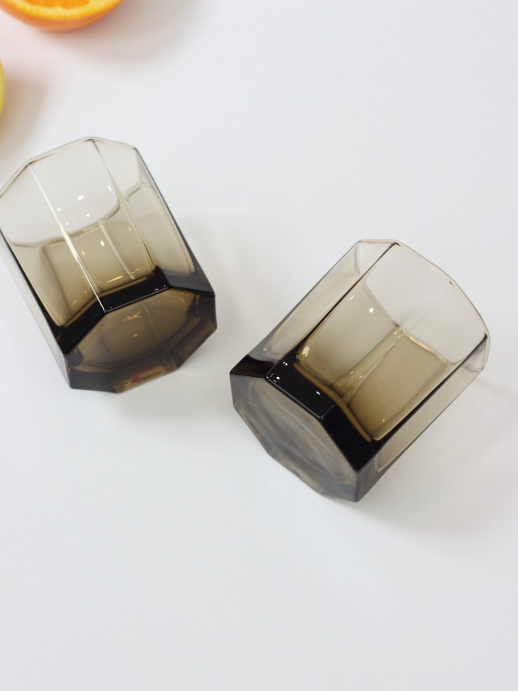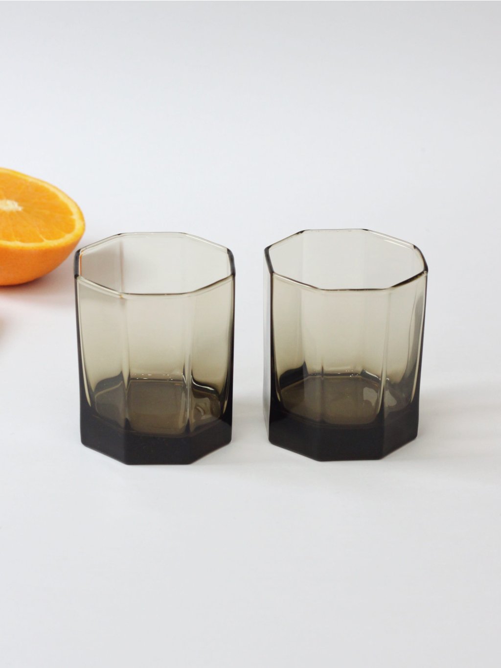 Two smoked whiskey glasses in a smaller version from the French brand Luminarc from the 1980s