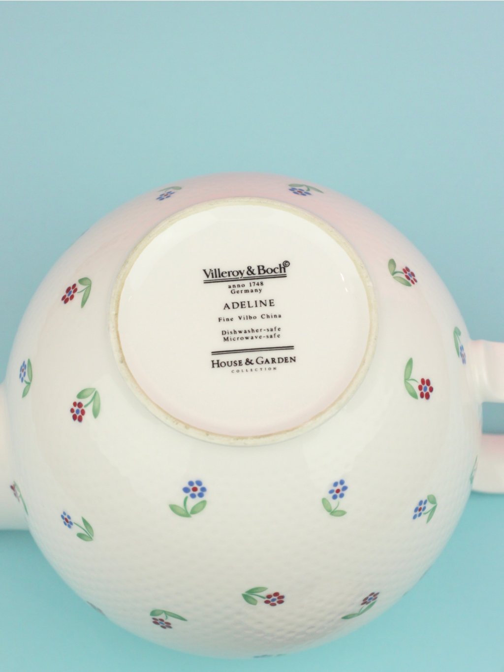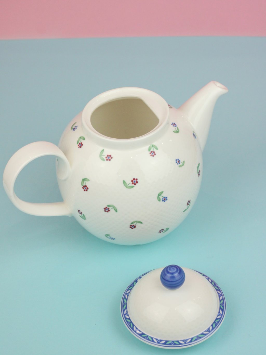Luxury porcelain teapot with flowers from the legendary German brand Villeroy & Boch from the Adeline collection from the 1990s