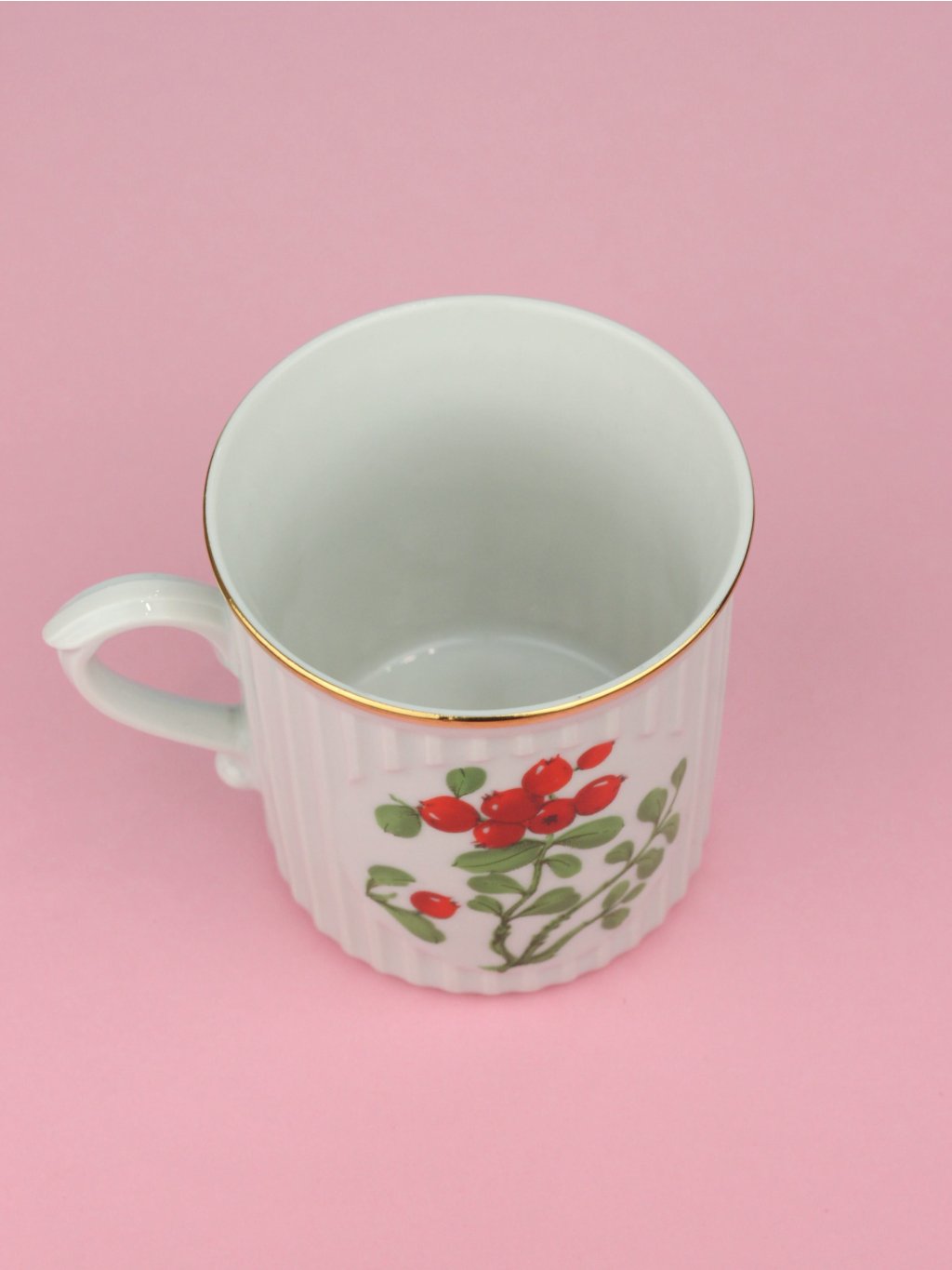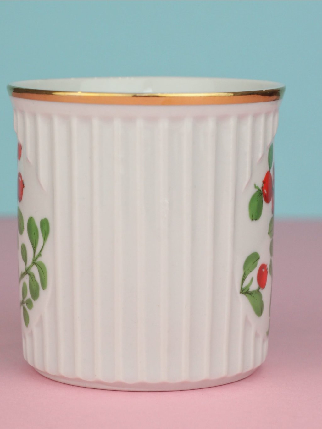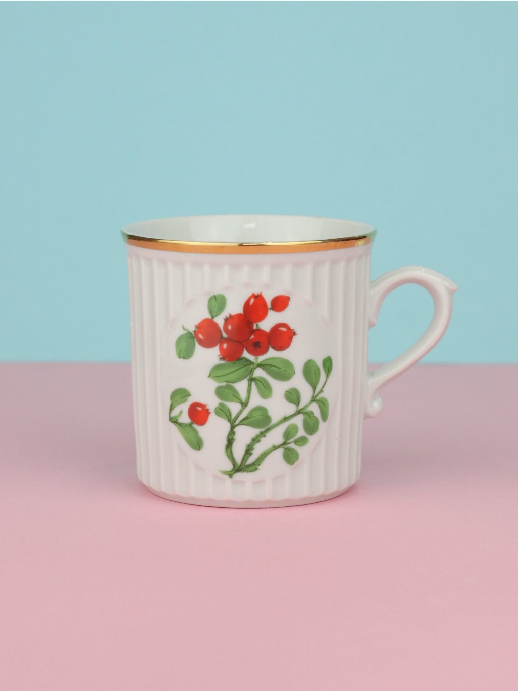 Hrnek s motivem brusinek z československé porcelánky Dubí