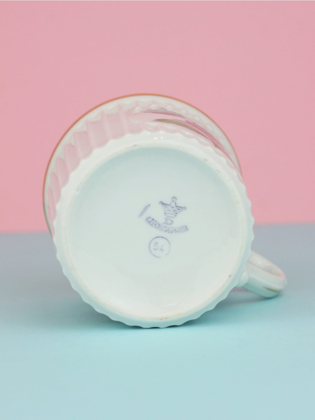Hrnek s motivem ostružin z československé porcelánky Dubí