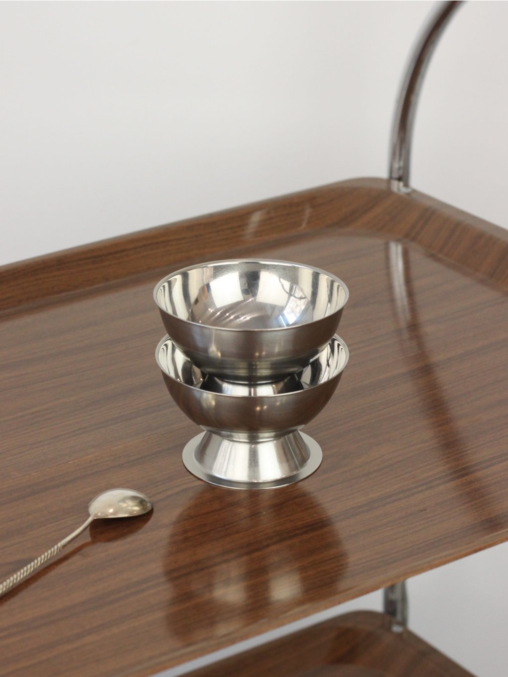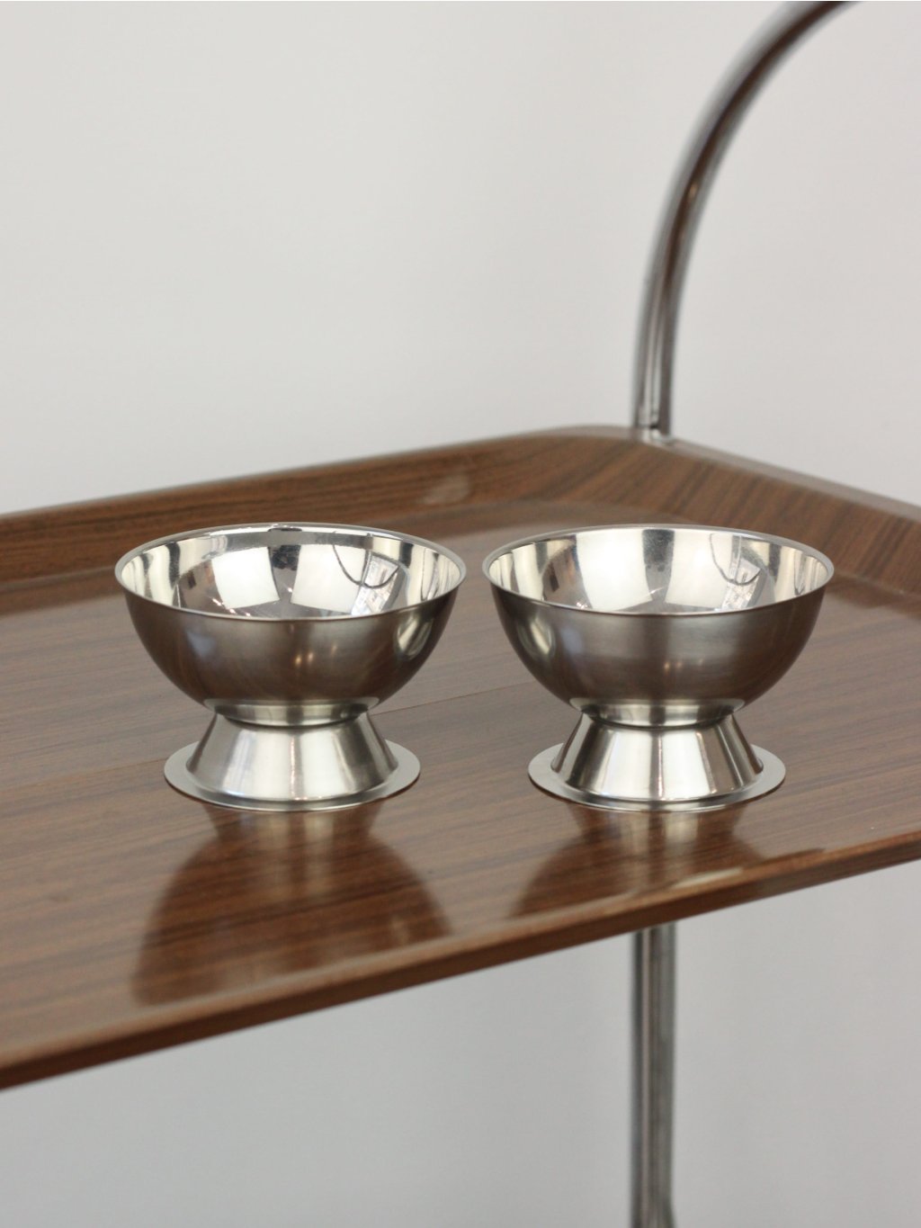 Pár pohárků z nerezové oceli od západoněmecké značky "chg", kterou založil Carl Hermann Gross