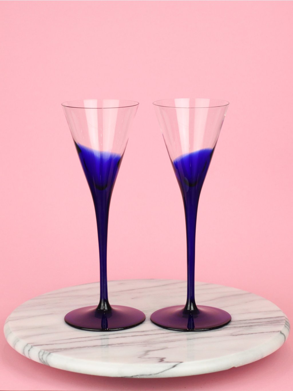 Dvě ručně foukané sklenice dle návrhu Juraje Steinhübela z 90. let pro slovenskou značku Rona (Sklárna Ledové Rovné), najdete je i ve sbírkách Slovenského muzea designu