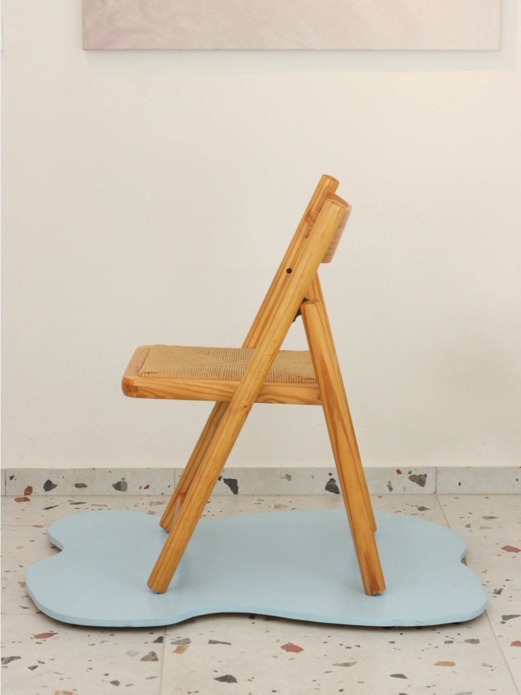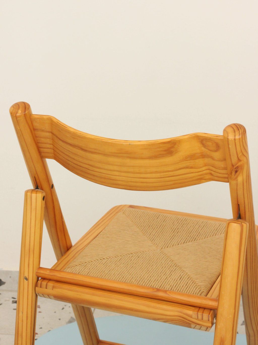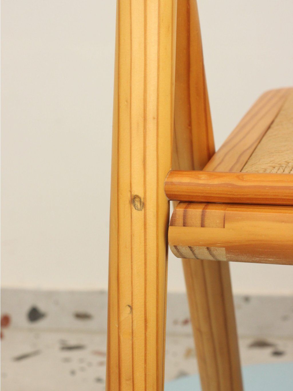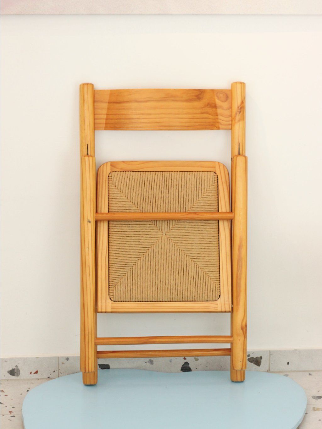 Skandinávská skládací židle z borovicového masivu ze 70. let, opletený sedák se dá vyndat